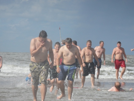 Am Freitag, 15.08.2014 ging es auf zu der großen „Taschenlampe“, die Nachts die Zimmer immer für wenige Sekunden hell macht. Nach einem langen Hinweg (5 km) wurde die Besucherplattform des ca. 60 Meterhohen Leuchtturms in Besitz genommen. Um aber auf die Plattform zu kommen, bezwungen wir zuerst 253 Treppen. Hier stieß so mancher an seine Grenzen. Dieses wurde aber durch die Atemberaubende Aussicht wieder gut gemacht. Für den Rückweg wählten wir den Strand. Er war zwar 2 km länger, aber um einiges schöner und erfrischender. Und durch das schöne Panorama bemerkte es kaum jemand. Und so wurden heute wieder ca. 12 Kilometer zurück gelegt.