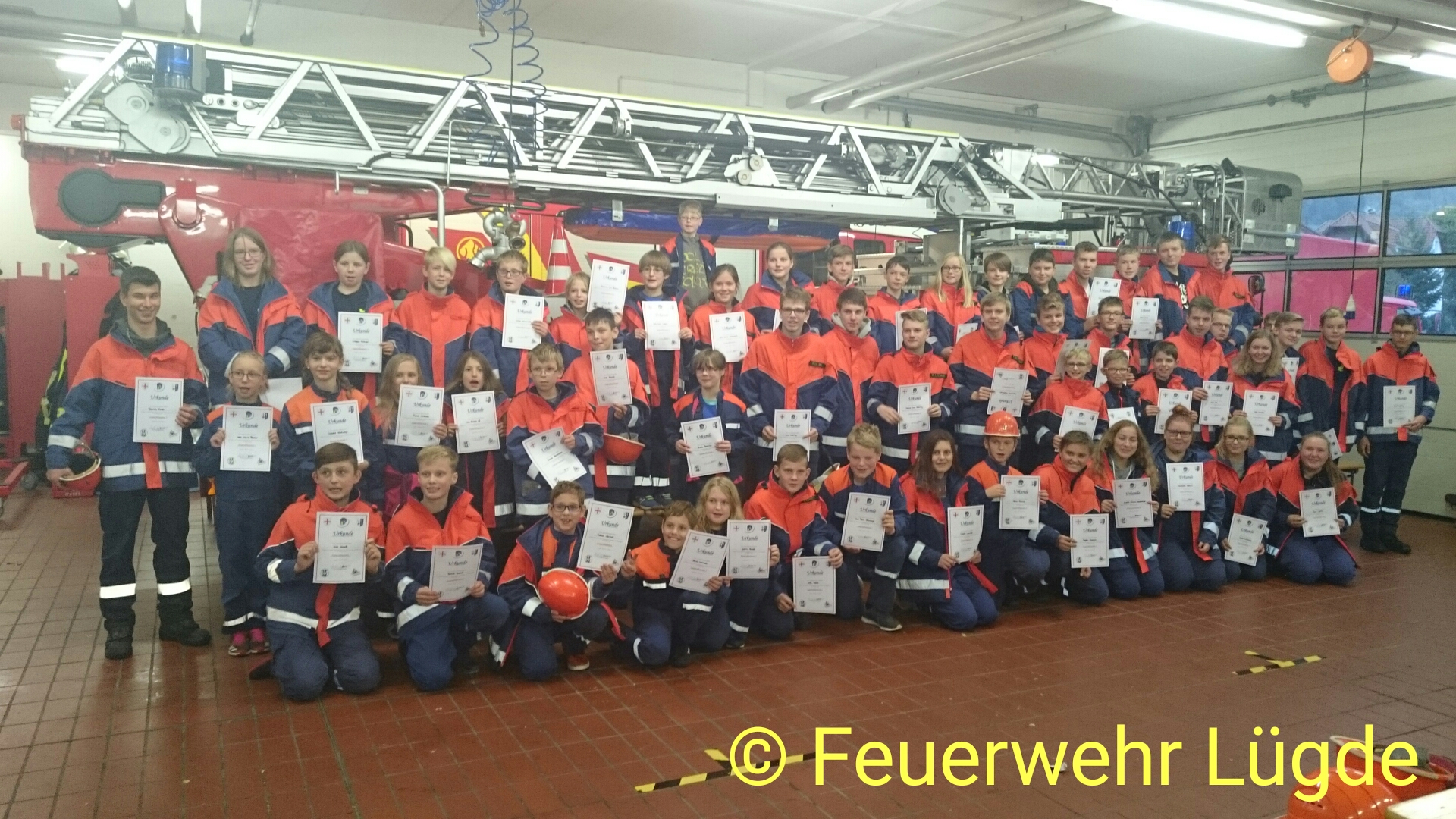 Insgesamt 75 Mitglieder aus Lügde und Bad Pyrmont haben die Jugendflamme 1 und 2 mit Bravur bestanden. Alle erhielten eine Urkunde und auf den dementsprechenden Jahreshauptversammlungen werden die dazugehörigen Anstecker in einem feierlichen Rahmen verliehen.