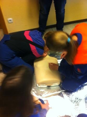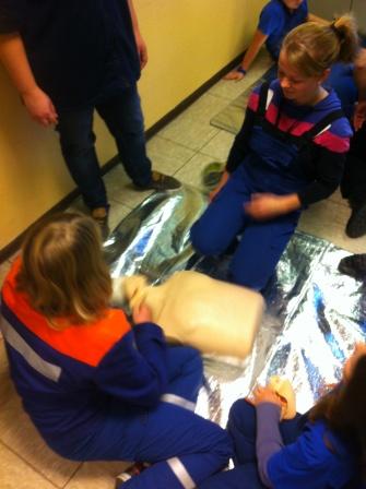 Neben der theoretischen Ausbildung gab es zahlreiche Möglichkeiten das Gelernte praktisch anzuwenden. So wurde die stabile Seitenlage, die Herz-Lungen-Wiederbelebung und die Anwendung eines Defibrillator den Kindern beigebracht. Außerdem wurden die Maßnahmen bei verunfallten Motorrad- und Autofahrern näher erläutert. Natürlich durfte das Verbinden mit verschiedenen Verbandsmaterialien in dem Erste-Hilfe-Kurs nicht fehlen.