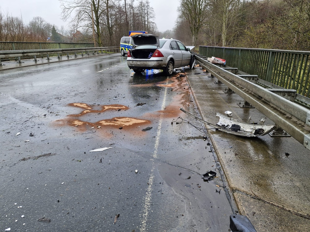 Ein Autofahrer war mit seinem Pkw in Fahrtrichtung Lügde unterwegs, als er in einer Kurve die Kontrolle über das Fahrzeug verlor. Der Wagen prallte zunächst gegen eine Leitplanke und schleuderte anschließend gegen die gegenüberliegende Schutzplanke.