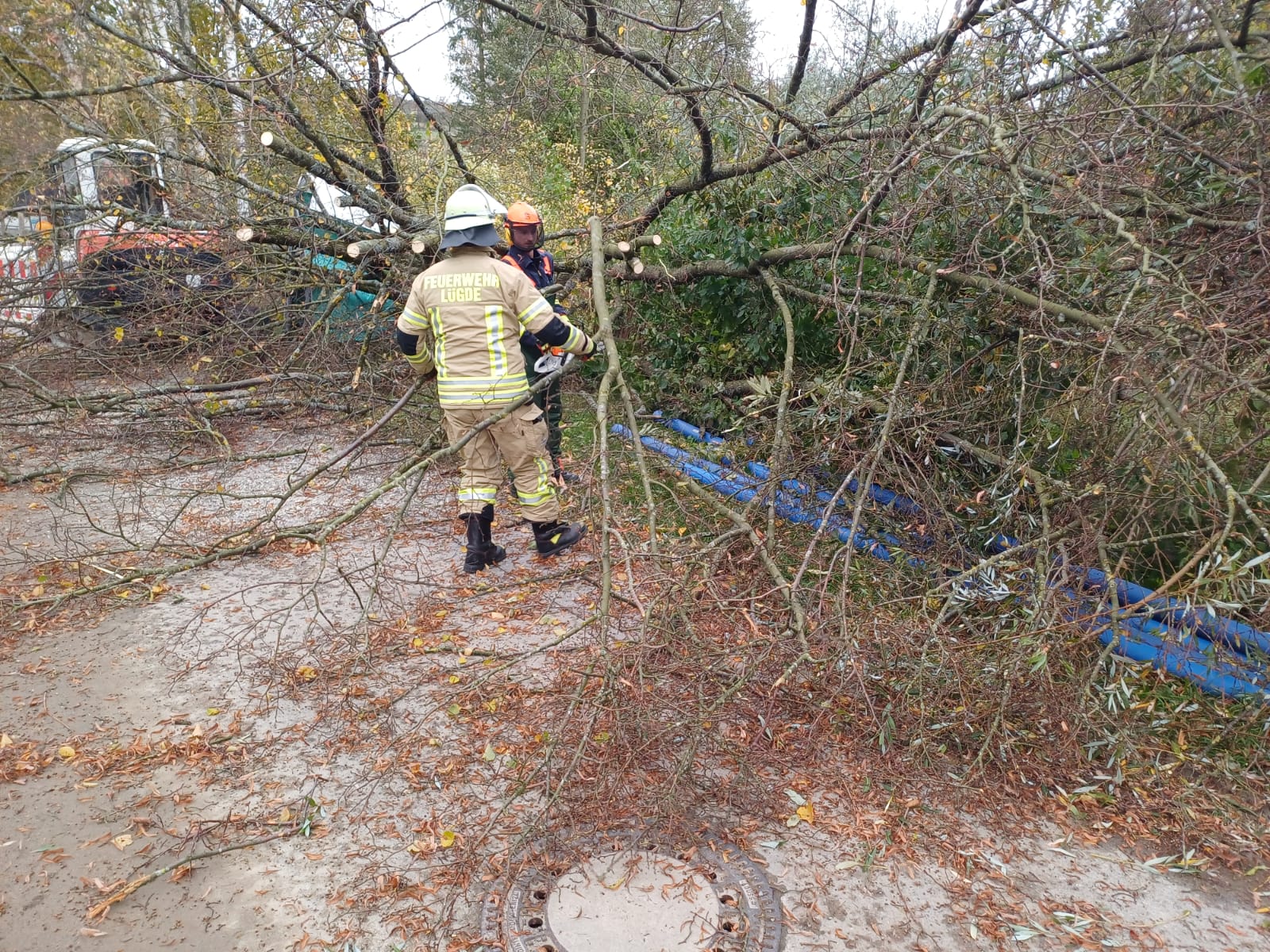 Zu einem umgestürzten Baum wurden die Einheiten Rischenau und Falkenhagen in den Triftweg im Ortsteil Rischenau alarmiert. Ein Baum ist aufgrund des starken Wind auf ein Bagger, ein Bauklo sowie auf die Fahrbahn gestürzt. Die Einsatzkräfte beseitigten den Baum mittels Kettensäge und reinigten die Fahrbahn.