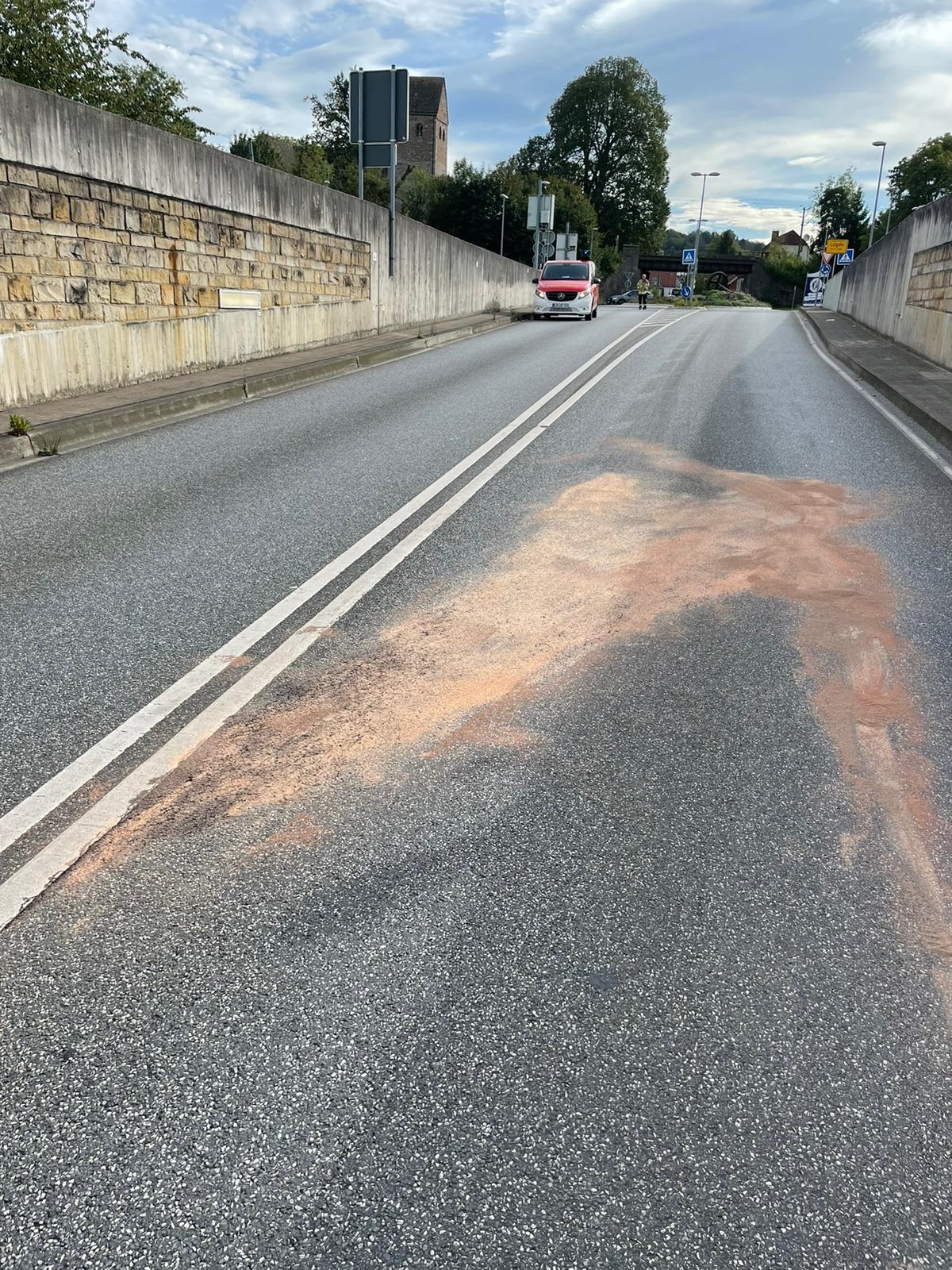 Ein motorisiertes Fahrzeug hat im Bereich der Kreuzherrenstraße sowie Köterbergstraße auf einer Länge von 500 Meter Betriebstoffe verloren. Die Einsatzkräfte sicherten die Einsatzstelle gegen den fließenden Verkehr und streuten die Ölspur mit speziellem Bindemittel ab. Im Anschluss wurde das Bindemittel wieder aufgenommen und fachgerecht entsorgt. Auf Anweisung wurden Gefahrenschilder im Kreuzungsbereich aufgestellt.