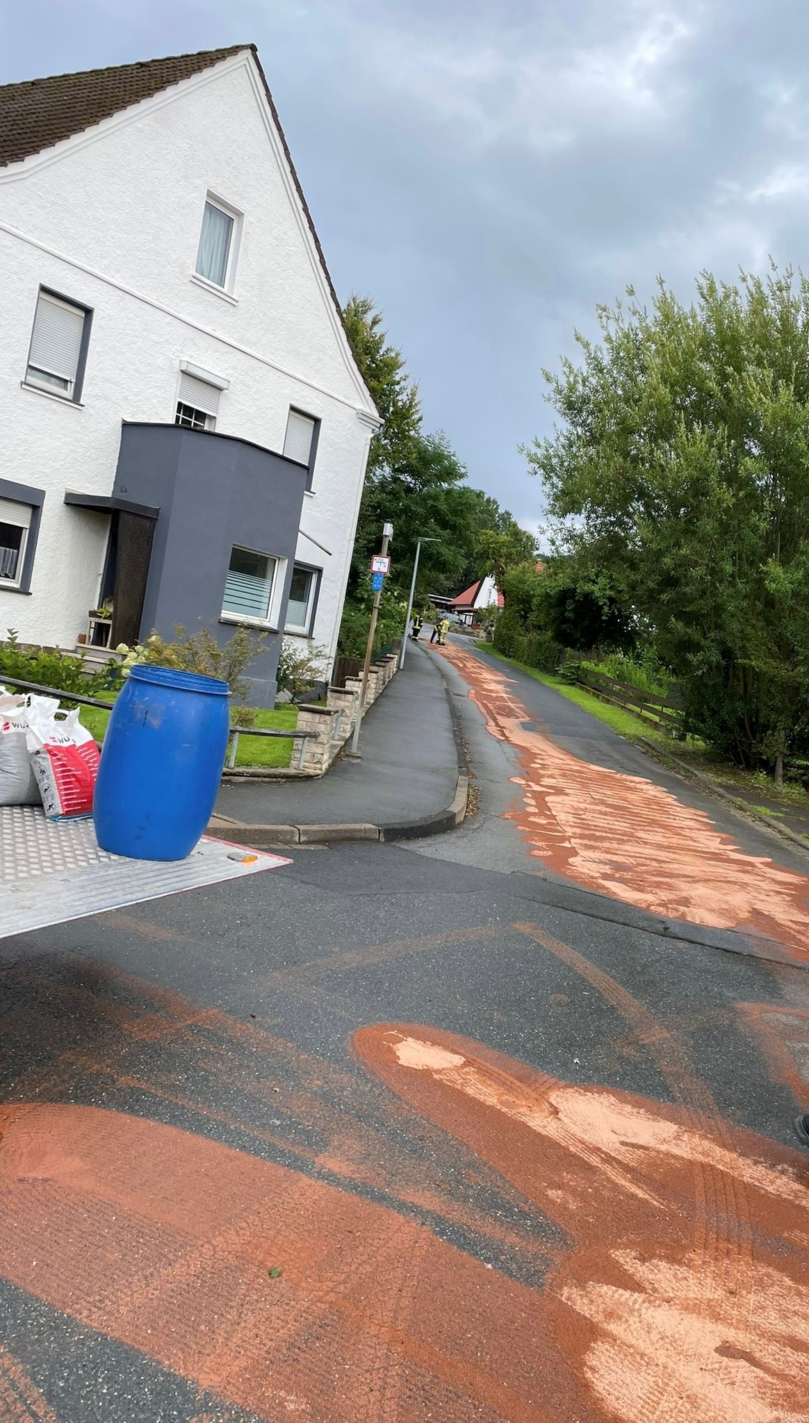 Nach der Erkundung der Einsatzstelle stellte sich heraus, dass ein motorisiertes Fahrzeug in mehreren Straßenzügen im Ortsteil Rischenau Betriebsstoffe verlor. Die Einsatzkräfte sicherten die Einsatzstelle gegen den fließenden Verkehr und streuten die Ölspur mit speziellem Bindemittel ab. Im Anschluss wurde das Bindemittel wieder aufgenommen und fachgerecht entsorgt. Auf Anweisung wurden Gefahrenschilder aufgestellt. Nachdem die ca. 500 Meter lange Ölspur abgestreut war, konnten die Einsatzkräfte wieder in den Standort.