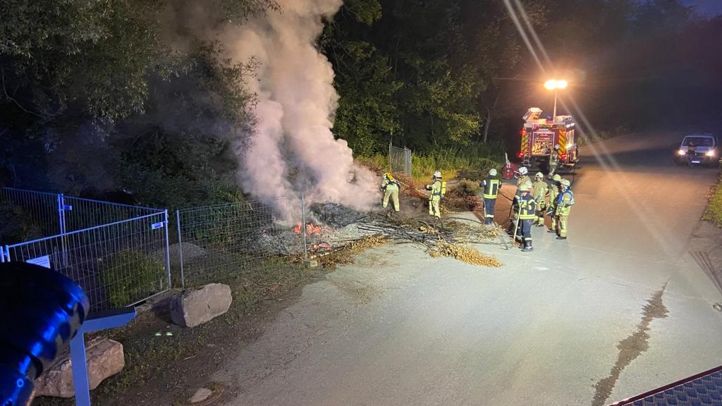 Der Haufen wurde mit Unterstützung des Baggers vom Bauhof der Stadt Lügde auseinandergezogen und mit einem C Rohr durch die Feuerwehr abgelöscht.