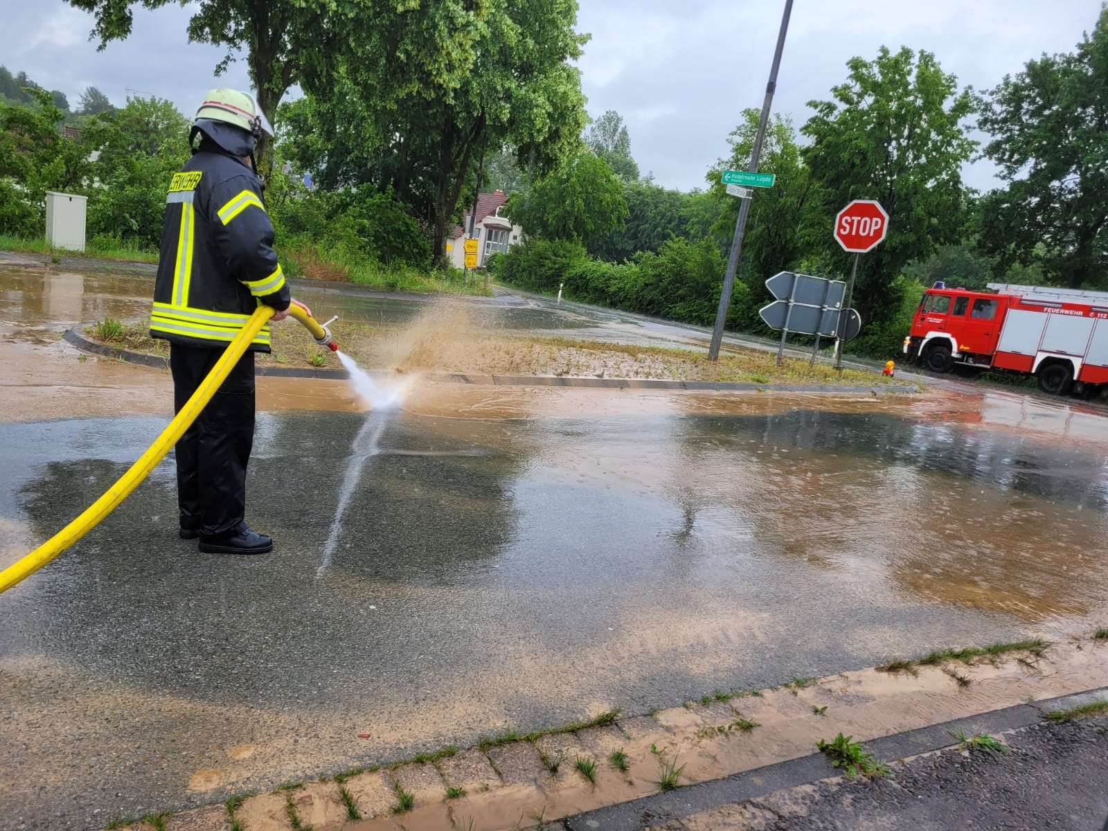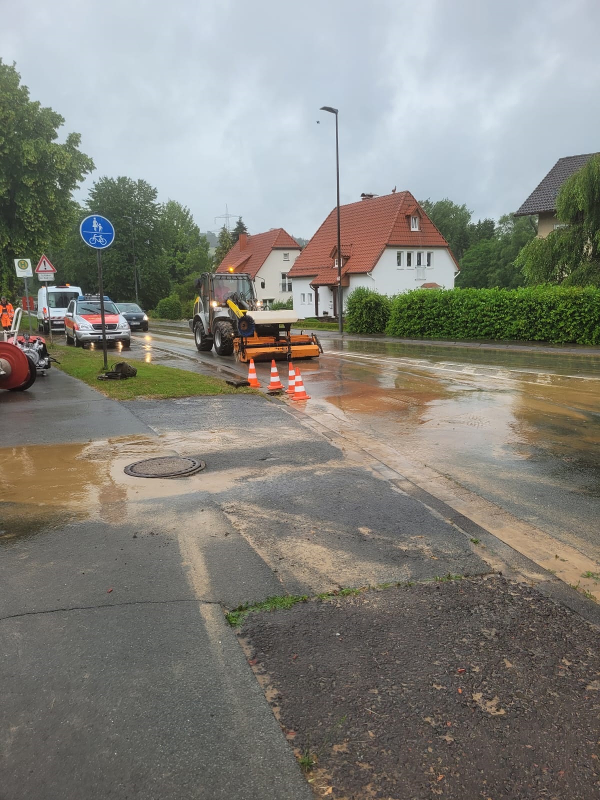 Auf Grund des Starkregenereignisses am frühen Morgen, kam es zu 4 Wetterbedingten Einsätzen in der Großgemeinde Lügde. Die Einsatzkräfte mussten in Rischenau an der Lügder Straße einen Keller auspumpen sowie die Straße reinigen. Zudem wurde mit Unterstützung des Bauhof Lügde eine Entwässerung an der Straße frei gelegt. Nach gut 9 Stunden konnte der Einsatz beendet werden und die Einsatzkräfte konnten wieder in den Standort zurück und die Einsatzmaterialien säubern.