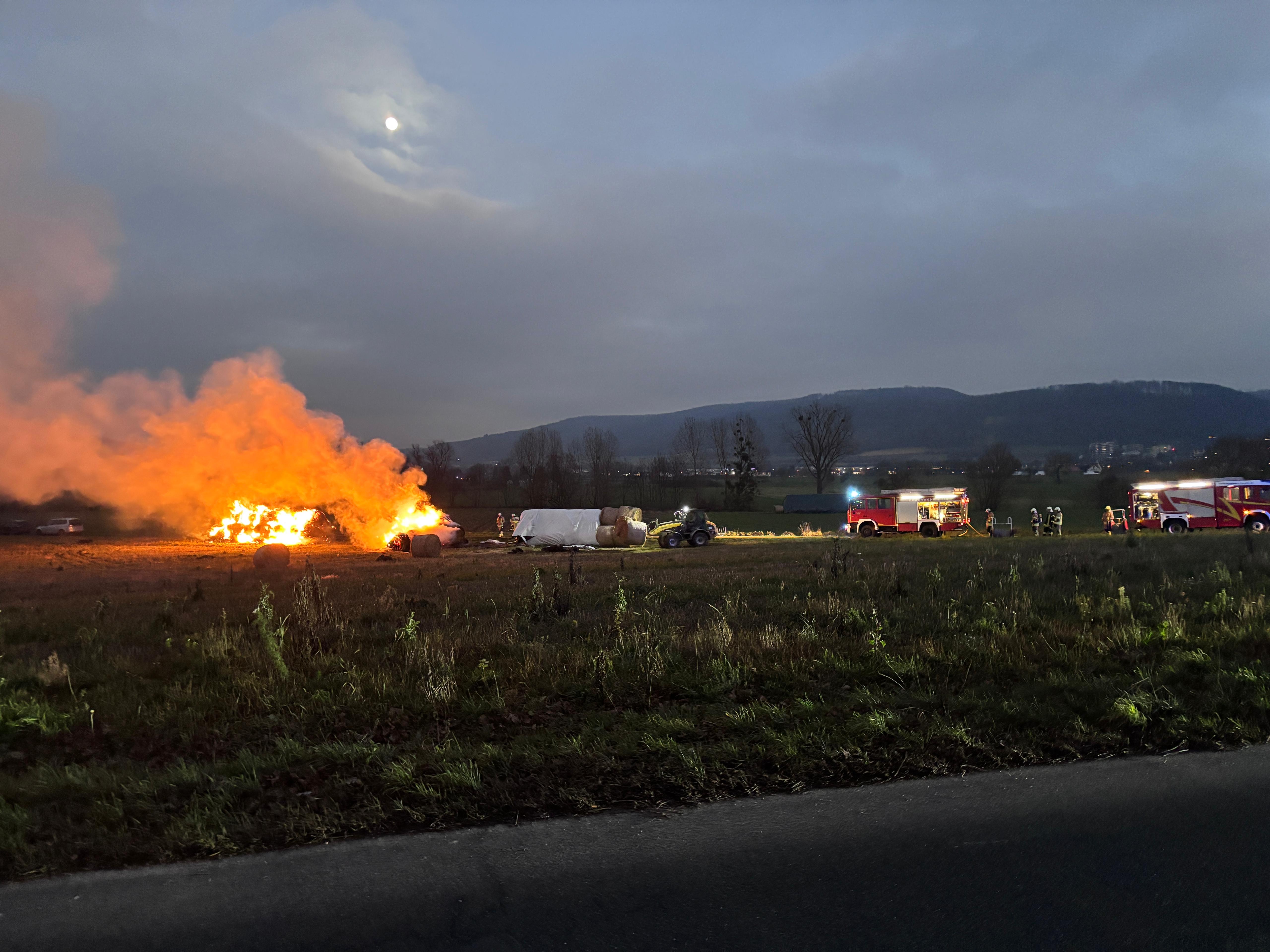 Einsatzstichwort:   Feuer 2: Strohballenbrand