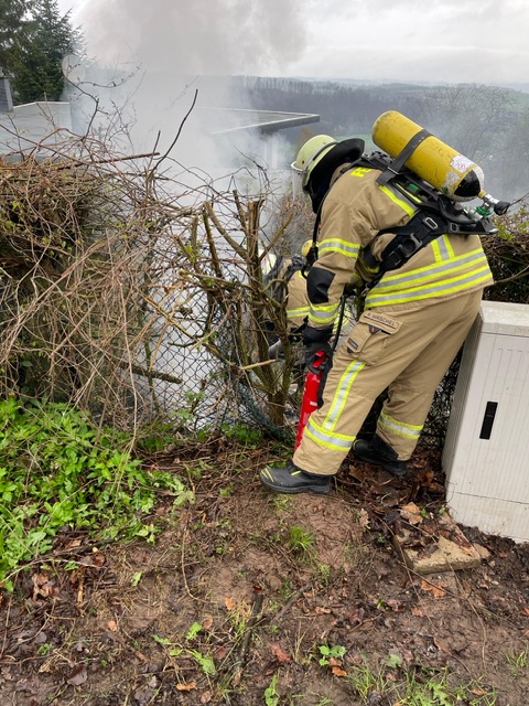 Parallel unternahmen die Bauhofmitarbeiter erste Löschversuche mit einem Pulverlöscher. Beim Eintreffen der Einheit Lügde stand der Verteilerkasten bereits in Vollbrand. Da das Brandobjekt sich auf einem nicht öffentlichen Gelände befand, verschafften sich die Einsatzkräfte Zugang zu dem Grundstück.