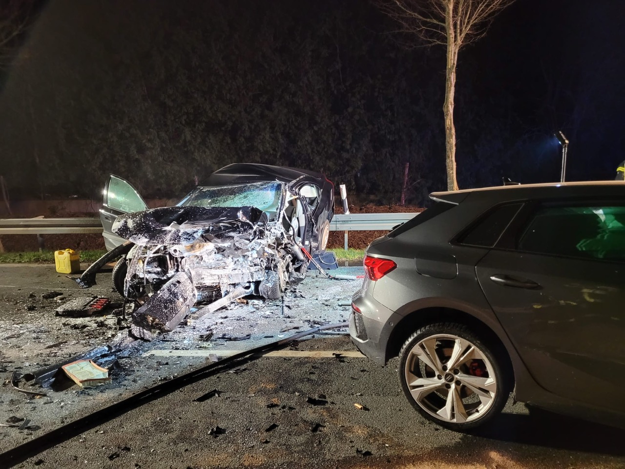 Die Person im zweiten PKW wurde durch den Unfall massiv im Fahrzeug eingeklemmt. Aufgrund der Schwere der Verletzungen der eingeklemmten Person, wurde eine sogenannte Sofortrettung eingeleitet. Dazu wurden verschiedene Hydraulische Rettungsgeräte durch die Feuerwehr eingesetzt. Die Person ist nach kurzer Zeit aus dem Fahrzeug befreit worden, jedoch konnte dann nur noch der Tod festgestellt werden.