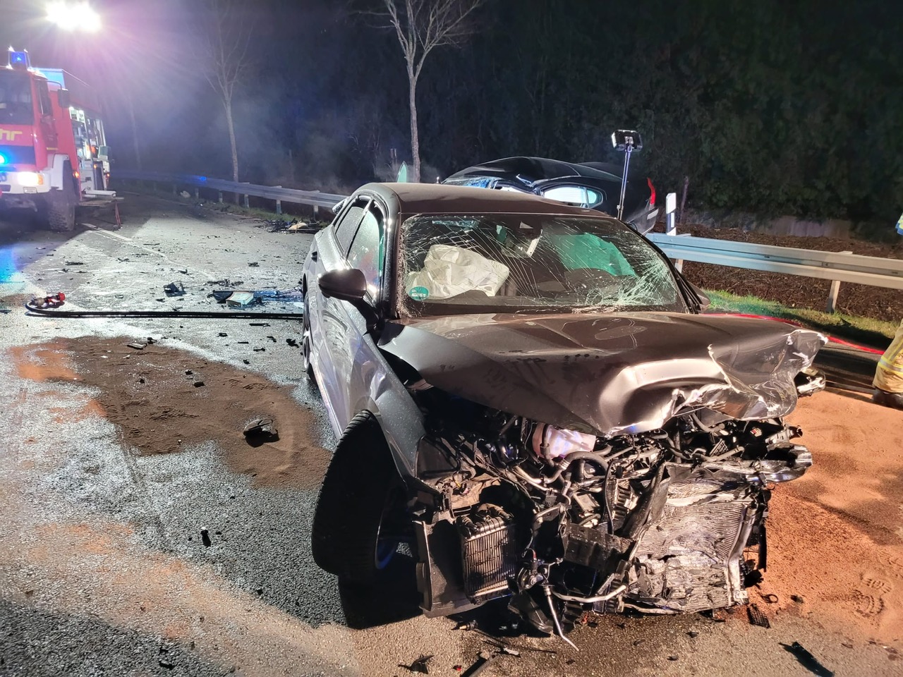 Als weitere Maßnahmen wurde durch die Feuerwehr die Straße voll gesperrt, der Brandschutz sichergestellt, auslaufende Betriebsstoffe gebunden und die Einsatzstelle weiträumig ausgeleuchtet.