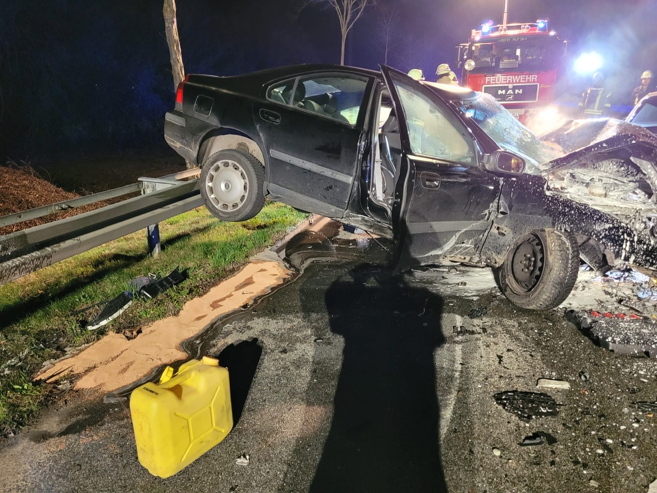 Eine Person ist durch Ersthelfer vor Eintreffen der Feuerwehr bereits aus seinem Fahrzeug befreit worden. Diese Person wurde durch den Rettungsdienst und einem sich zufällig an der Einsatzstelle befindlichem Notarzt Erstversorgt und ist anschließend durch den Rettungsdienst ins Krankenhaus gebracht worden.