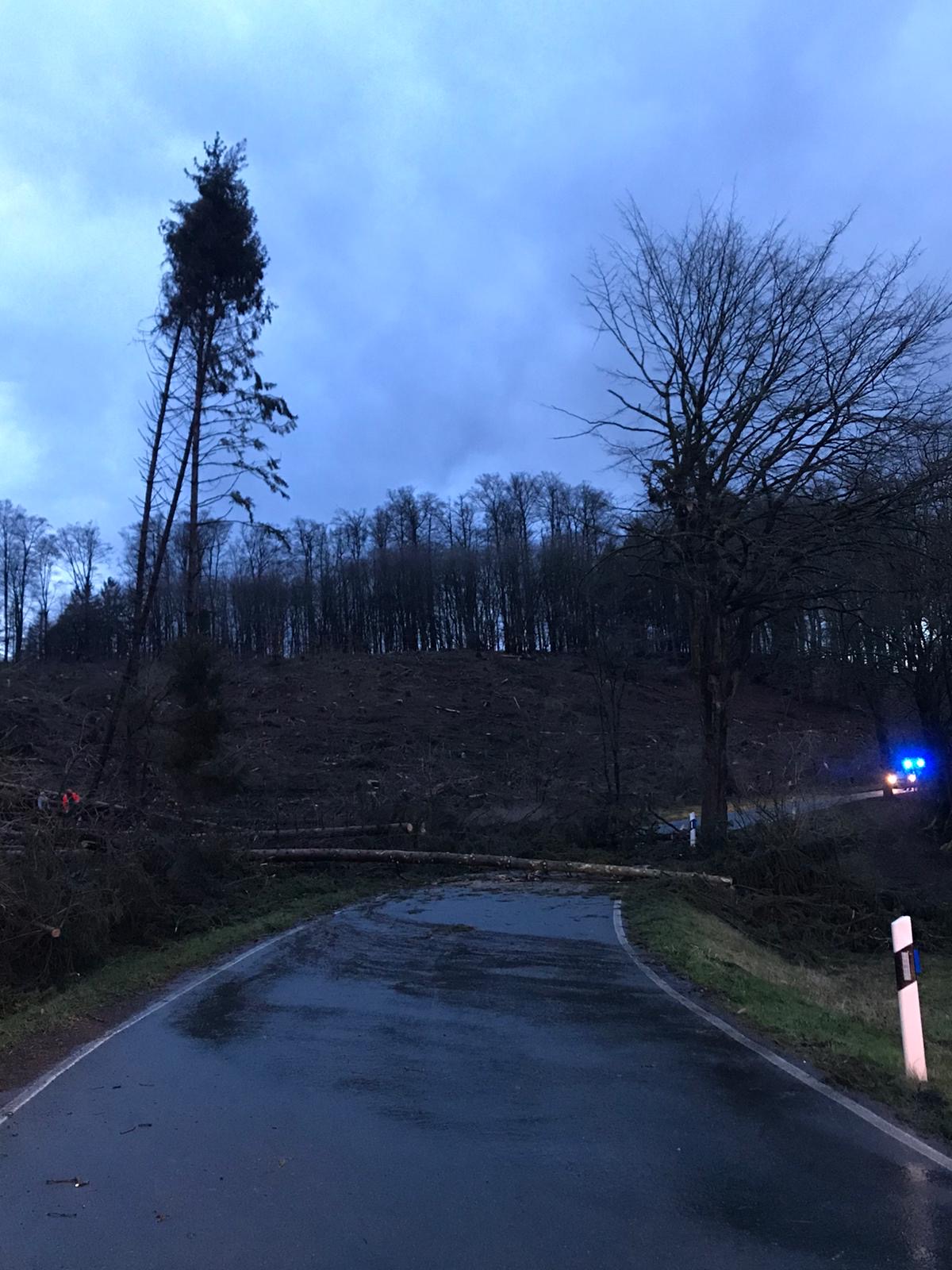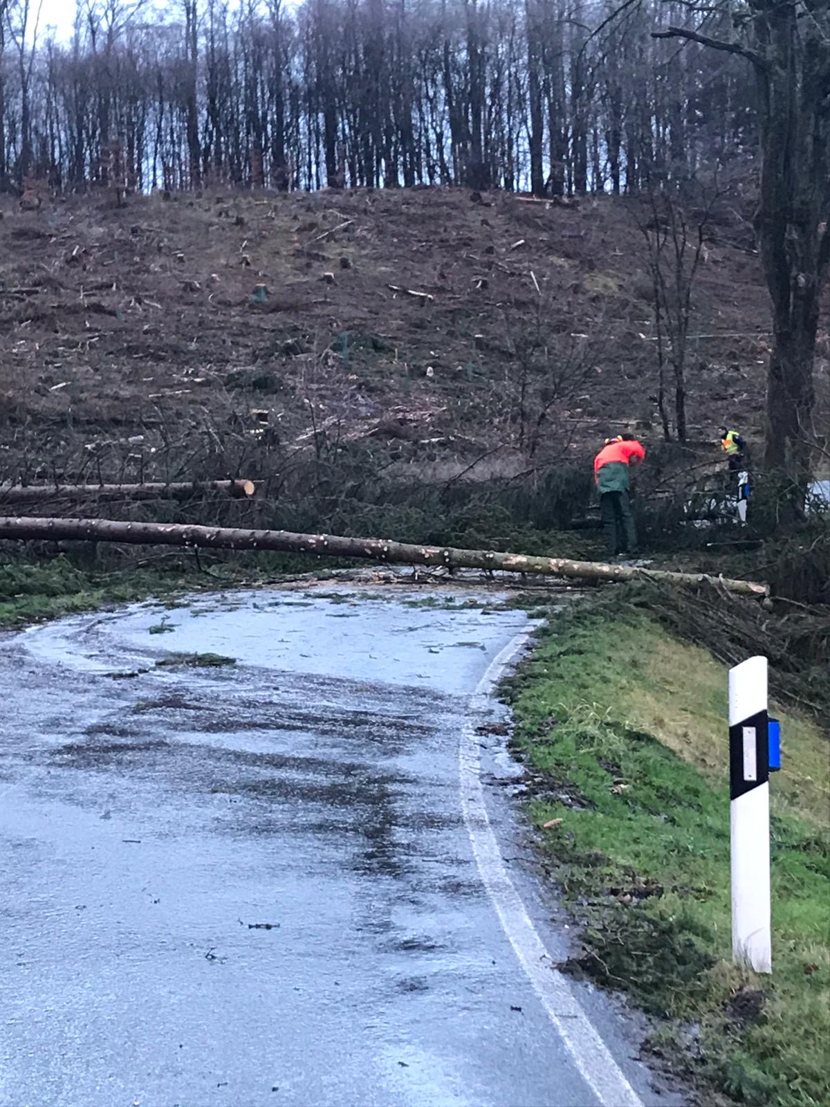 Der Löschzug Lügde wurde durch die Kreisleitstelle mit dem Einsatzstichwort "TH Baum" in die Eschenbrucher Straße alarmiert. An der Einsatzstelle stellte sich heraus, dass mehrere Bäume umgefallen sind und die Fahrbahn komplett versperrten. Die Einsatzkräfte sicherten die Einsatzstelle ab und beseitigten die Bäume von der Fahrbahn. Da noch weitere Bäume drohten auf die Fahrbahn zu fallen und hiervon ein hohes Gefahrenpotenzial ausging, wurden diese durch die Einsatzkräfte gefällt. Anschließend wurde die Fahrbahn gereinigt. Nach gut zwei Stunden war der Einsatz für die Feuerwehr beendet.