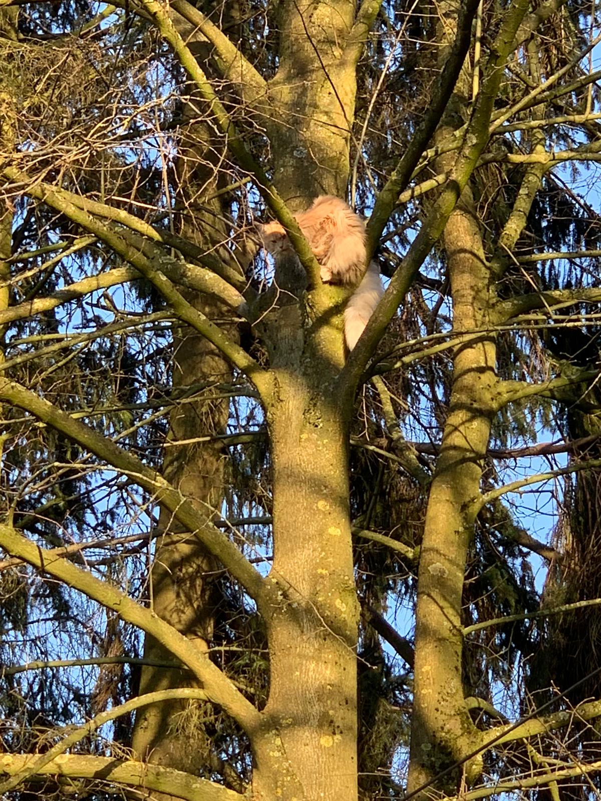 Eine Katze saß in einem Baum fest und konnte sich nicht selbst aus seiner misslichen Lage befreien. Ein besorgter Anwohner rief aus diesem Grund die Feuerwehr.