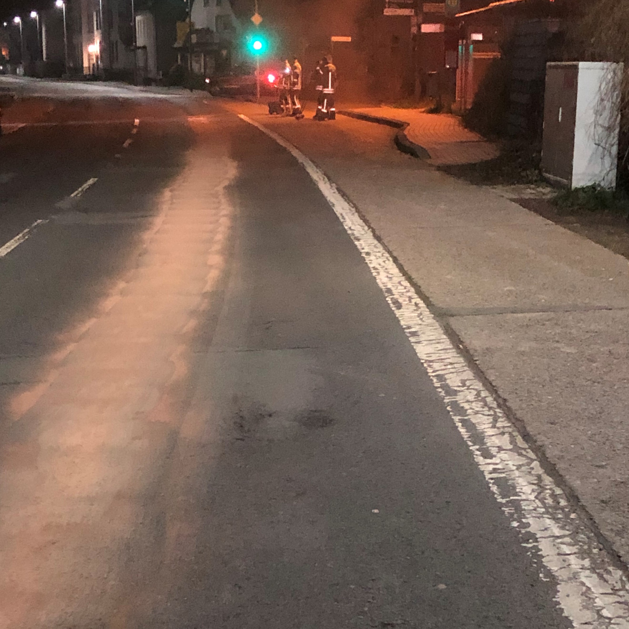 Nach der Erkundung der Einsatzstelle stellte sich heraus, dass ein motorisiertes Fahrzeug auf einer Länge von ca. 1 Kilometer Betriebsstoffe verlor. Die Einsatzkräfte sicherten die Einsatzstelle gegen den fließenden Verkehr und streuten die Ölspur mit speziellem Bindemittel ab. Im Anschluss wurde das Bindemittel wieder aufgenommen und fachgerecht entsorgt.