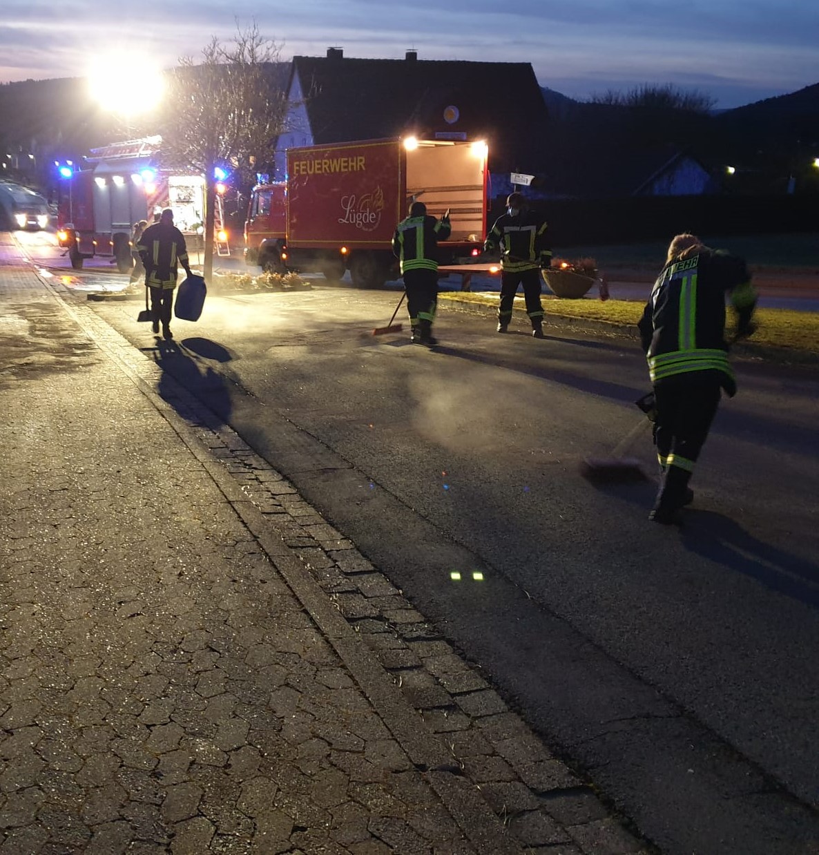 Nach der Erkundung der Einsatzstelle stellte sich heraus, dass ein motorisiertes Fahrzeug Öl verlor. Die Einsatzkräfte sicherten die Einsatzstelle gegen den fließenden Verkehr ab und streuten die Ölspur mit speziellem Bindemittel ab. Im Anschluss wurde das Bindemittel wieder aufgenommen und fachgerecht entsorgt.