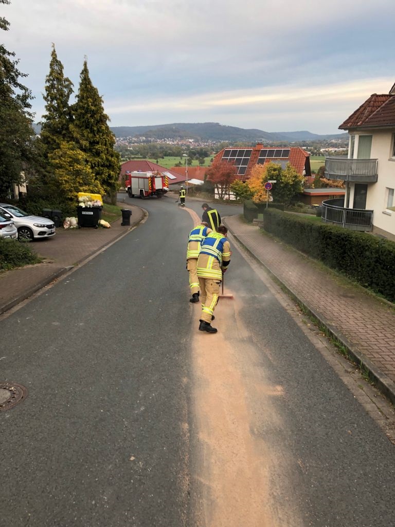 Die Feuerwehr Lügde wurde durch die Leitstelle des Kreis Lippe zu einer Ölspur in die Schlesier Straße alarmiert. Nach der Erkundung der Einsatzstelle stellte sich heraus, dass ein motorisiertes Fahrzeug auf einer Länge von ca. 400 Metern beginnend in der Pommernstraße Betriebsstoffe verloren hat. Die Einsatzkräfte sicherten die Einsatzstelle gegen den fließenden Verkehr ab und machten die ausgelaufenen Betriebsstoffe mit speziellem Bindemittel unschädlich. Im Anschluss wurde das Bindemittel wieder aufgenommen und fachgerecht entsorgt.