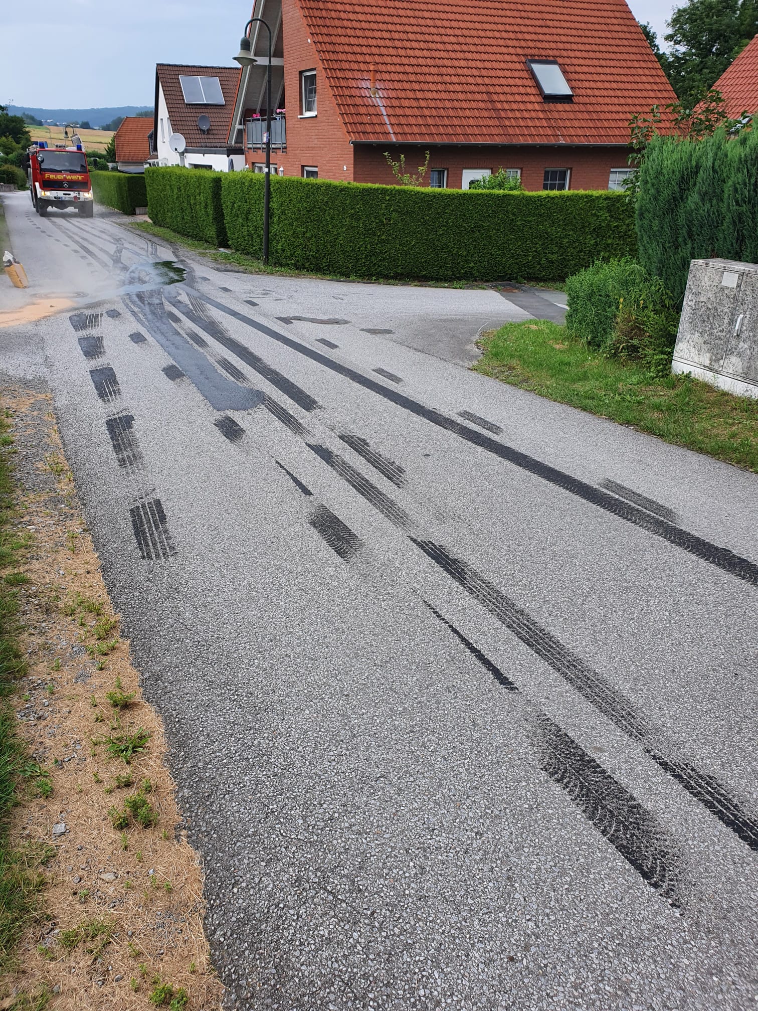 Die Feuerwehr Lügde wurde durch die Leitstelle des Kreis Lippe zu einer Ölspur in die Pyrmonter Straße alarmiert. Nach der Erkundung der Einsatzstelle stellte sich heraus, dass ein motorisiertes Fahrzeug Betriebsstoffe verloren hat. Die Einsatzkräfte sicherten die Einsatzstelle gegen den fließenden Verkehr ab und machten die Ölspur mit speziellem Bindemittel unschädlich. Im Anschluss wurde das Bindemittel wieder aufgenommen und fachgerecht entsorgt.