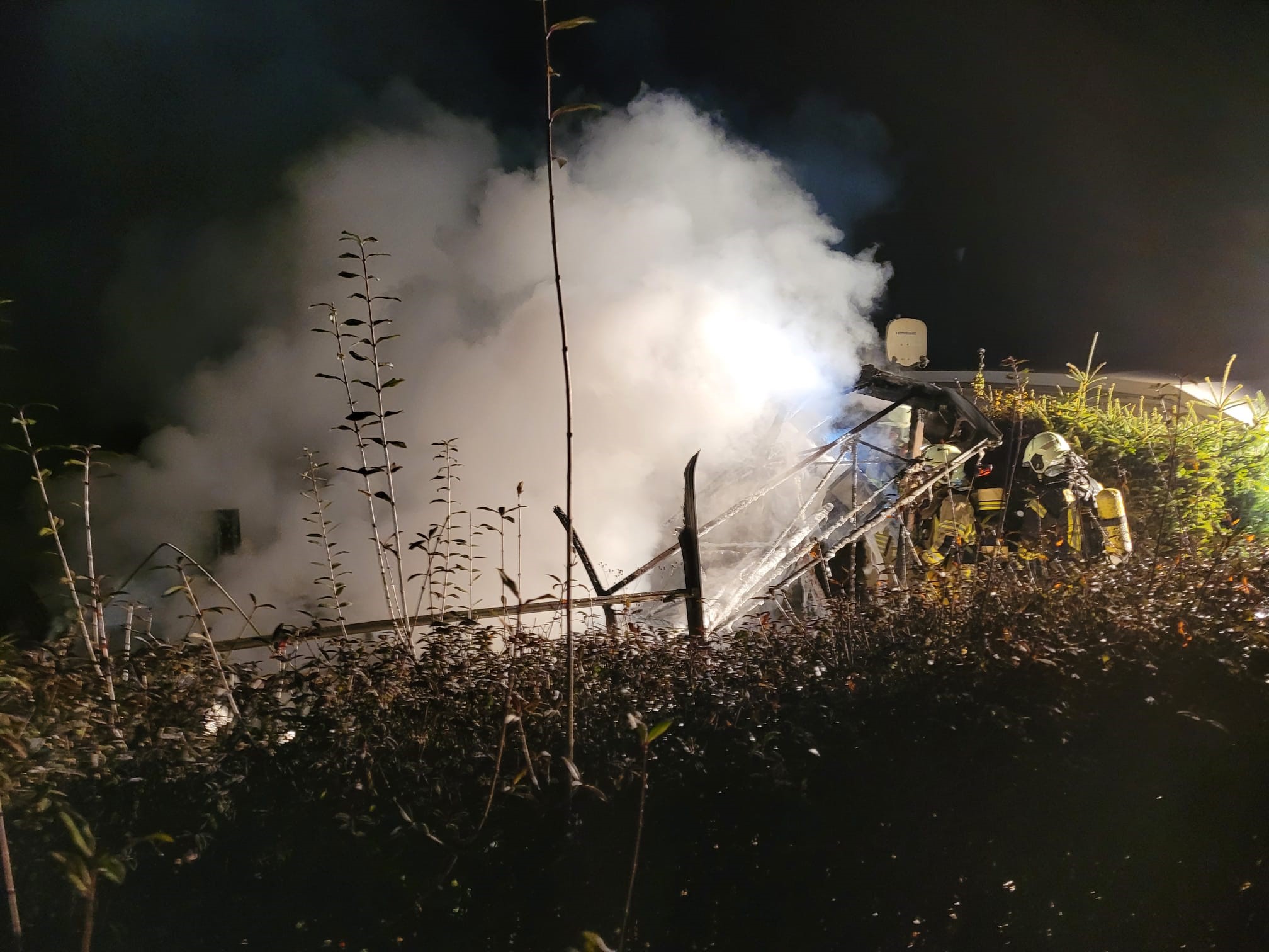 Während des gesamten Einsatzes kontrollierten die Einsatzkräfte die Brandstelle mittels einer Wärmebildkamera.