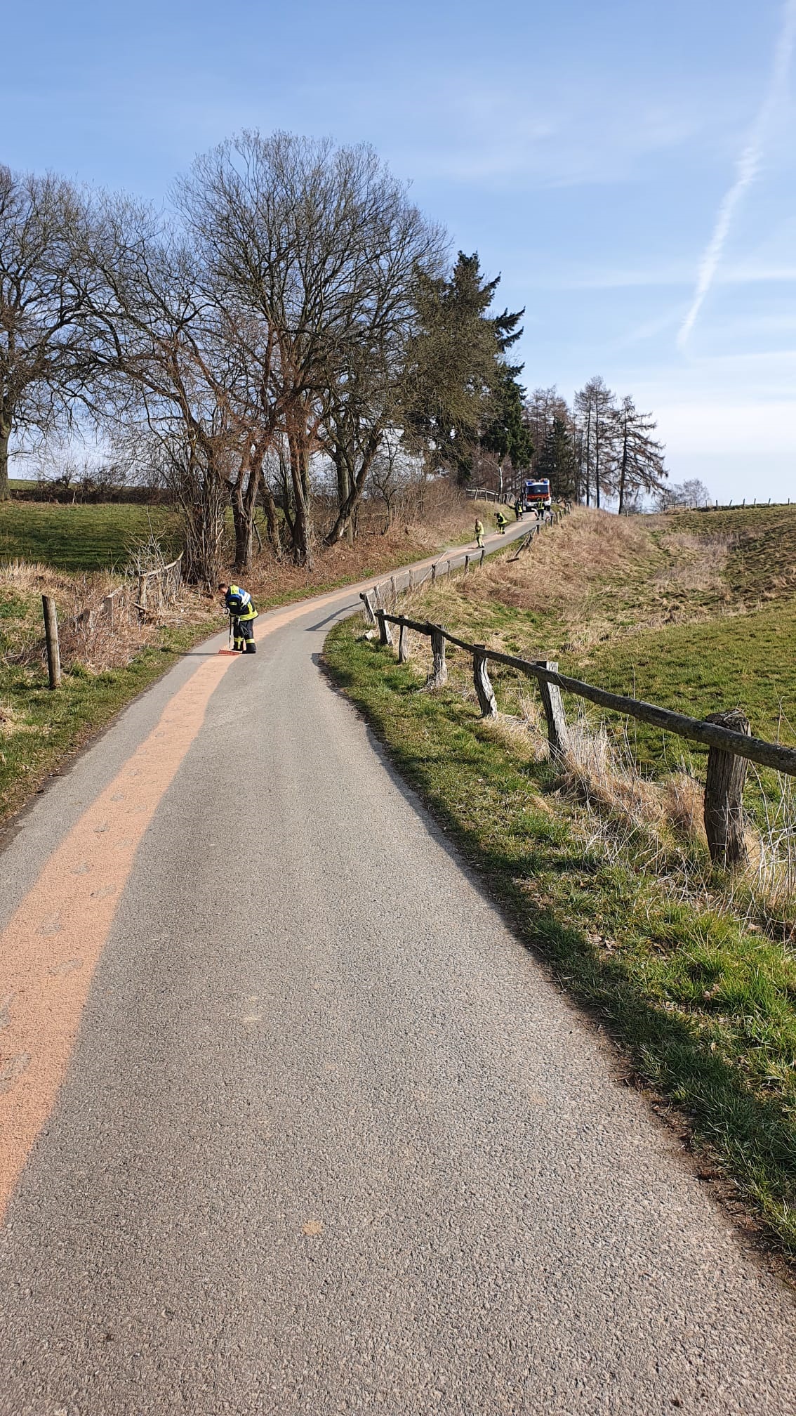 Kurz nach zehn Uhr wurde die Einheit Lügde zu einer Ölspur in die Straße "Silberbrink" alarmiert. Die Ölspur erstreckte sich über eine Länge von ca. zwei km über die Straßen Silberbrink, Uhlensenbach und Höxterstraße mit einer Breite von bis zu zwei Metern.