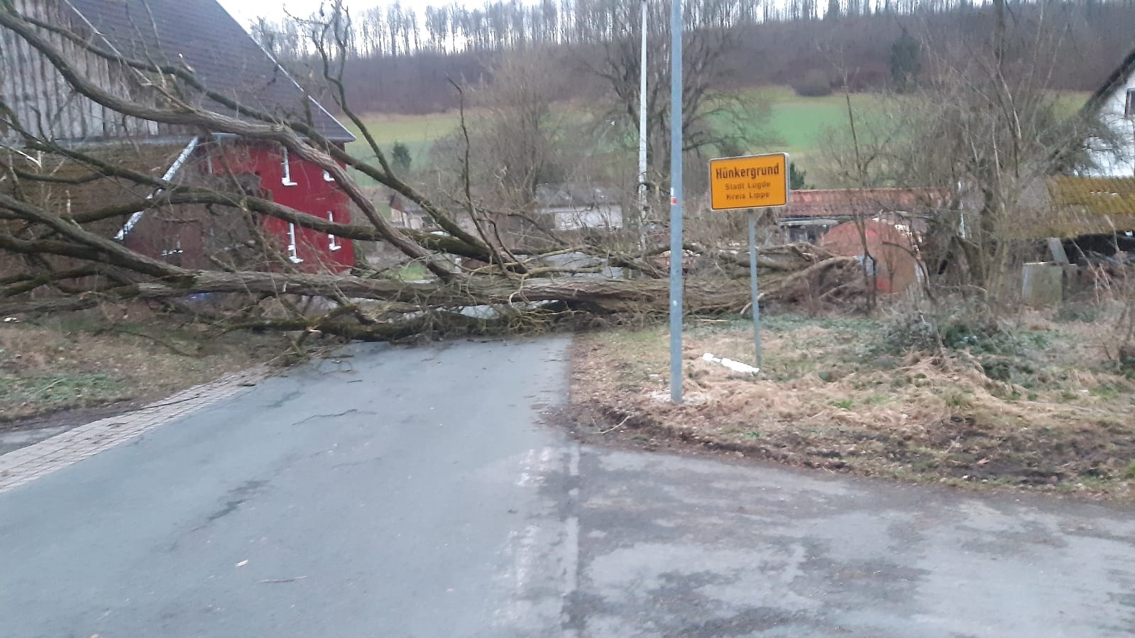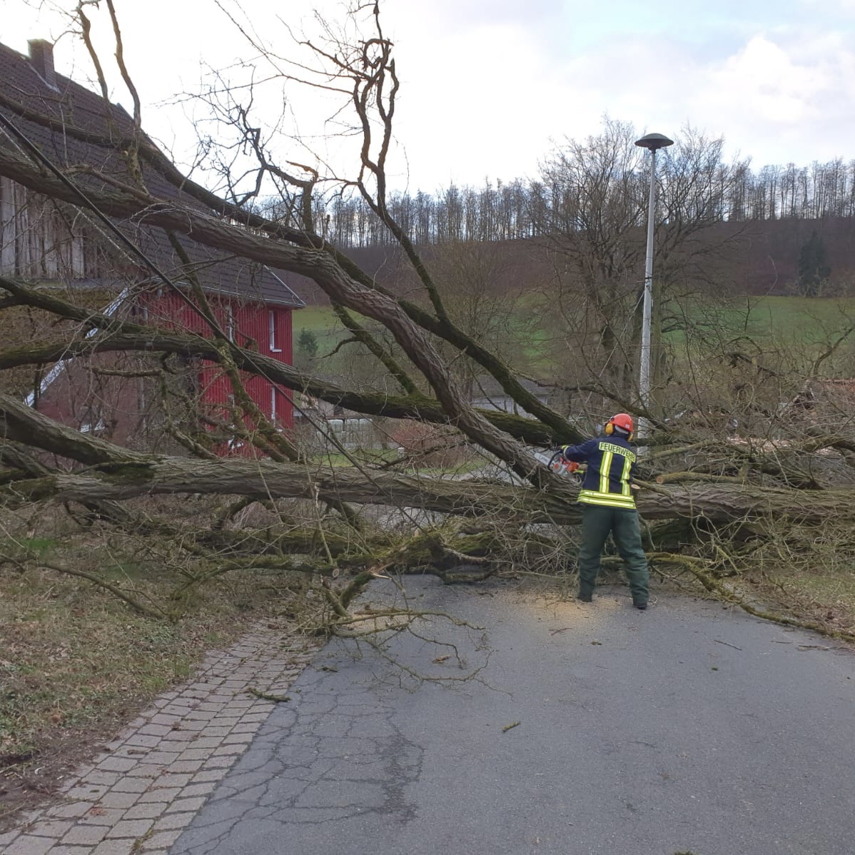 Die Einheit Wörderfeld wurde durch die Kreisleitstelle mit dem Einsatzstichwort "TH Baum" in die Hünkergrunder Straße alarmiert. An der Einsatzstelle stellte sich heraus, dass ein Baum umgefallen ist und die Fahrbahn komplett versperrte. Die Einsatzkräfte sicherten die Einsatzstelle ab und beseitigten den Baum von der Fahrbahn.