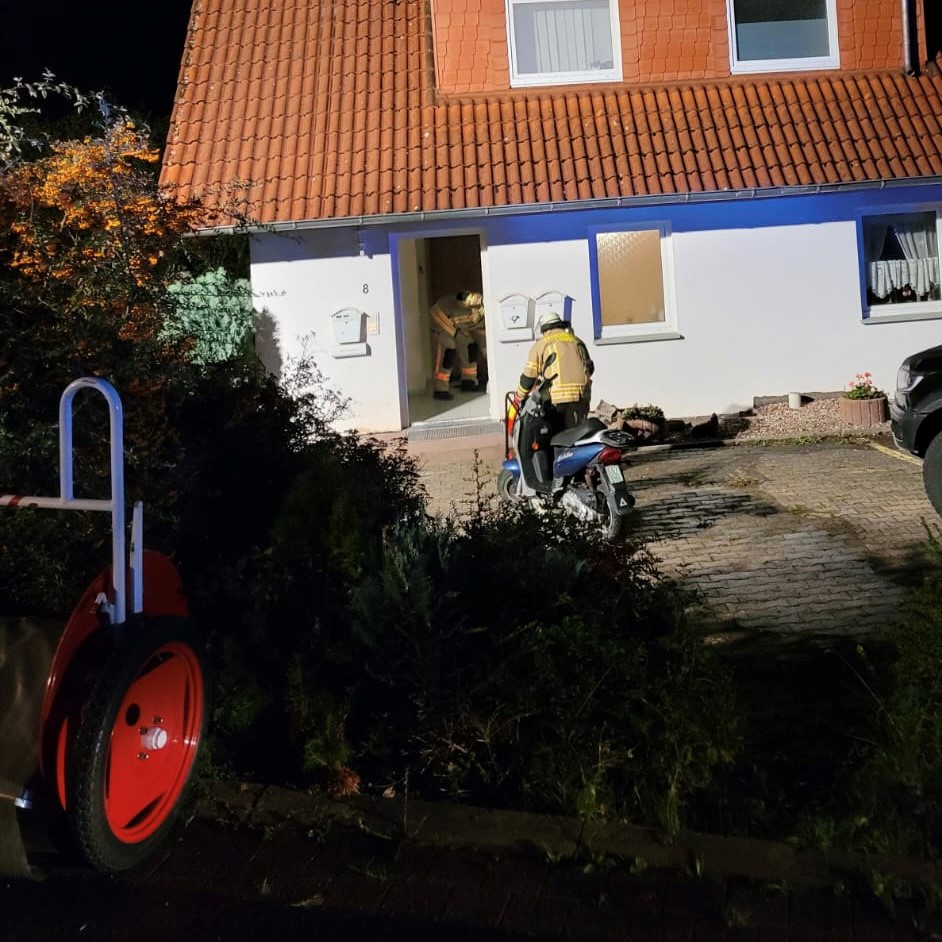 Nach dem schnellen Eintreffen der ersten Einsatzkräfte und der Erkundung der Einsatzlage an der Einsatzstelle, stellte sich heraus, dass durch ungeklärte Ursache in einem Vorraum im Eingangsbereich eines Mehrfamilienhauses ein Feuer ausgebrochen war. Das ausgebreitete Feuer konnte durch den Eigentümer vor Eintreffen der Feuerwehr bereits gelöscht werden. Die Brandstelle wurde durch die Einsatzkräfte mit der Wärmebildkamera kontrolliert, hier konnten keine weiteren Glutnester ausfindig gemacht werden. Im Anschluss wurde das Wohnhaus mit dem Überdrucklüfter belüftet. Nach gut einer Stunde war der Einsatz für die Feuerwehr Lügde beendet und die Einsatzstelle wurde an die Polizei übergeben.