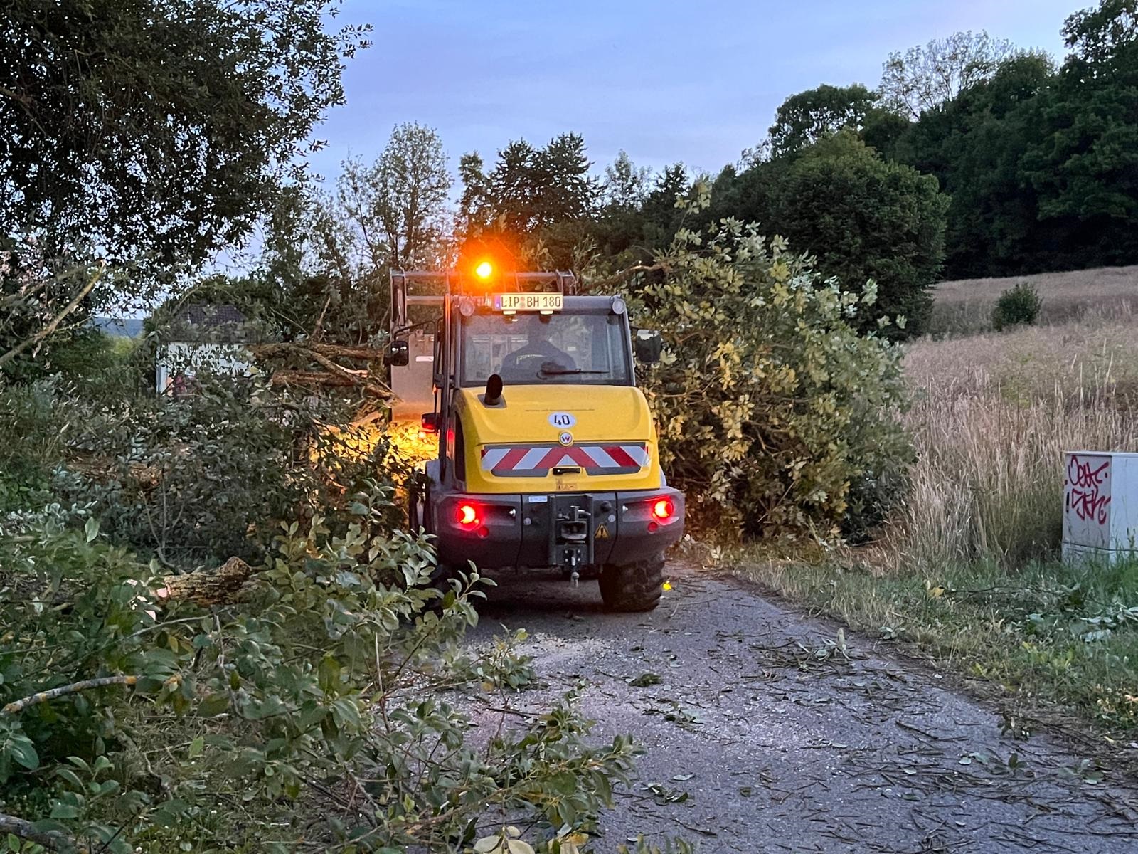 Zu einem umgestürzten Baum wurde die Einheit Lügde in die Straße "Unter den Klippen" alarmiert. Die Einsatzstelle befand sich aber nicht wie gemeldet "Unter den Klippen" sondern in der Straße Südfeld. Hier ist ein größerer Baum auf die Fahrbahn gefallen und versperrte diese. Die Einsatzkräfte sicherten die Einsatzstelle ab und beseitigten den Baum mittels Kettensäge. Da der Baum einen größeren Durchmesser aufwies, wurde mit Hilfe eines Radladers des Bauhof Lügde der Stamm von der Fahrbahn beseitigt. Nach gut einer Stunde war der Einsatz für die Feuerwehr beendet und die Straße wieder frei.