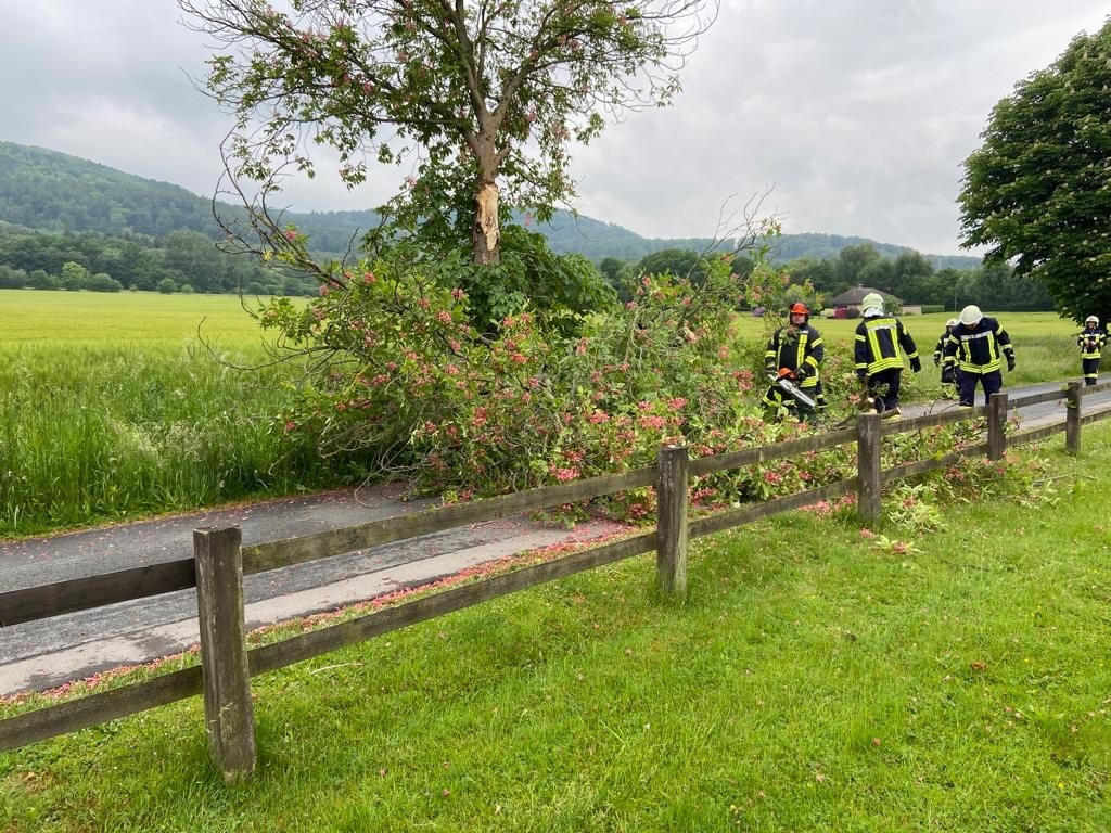Die Einheit Elbrinxen wurde durch die Kreisleitstelle mit dem Einsatzstichwort "TH Baum" in den Postweg alarmiert. An der Einsatzstelle stellte sich heraus, dass ein größerer Ast aus einem Baum herausgebrochen wart und die Fahrbahn komplett versperrte. Die Einsatzkräfte sicherten die Einsatzstelle ab und beseitigten die Gefahrenlage von der Fahrbahn.