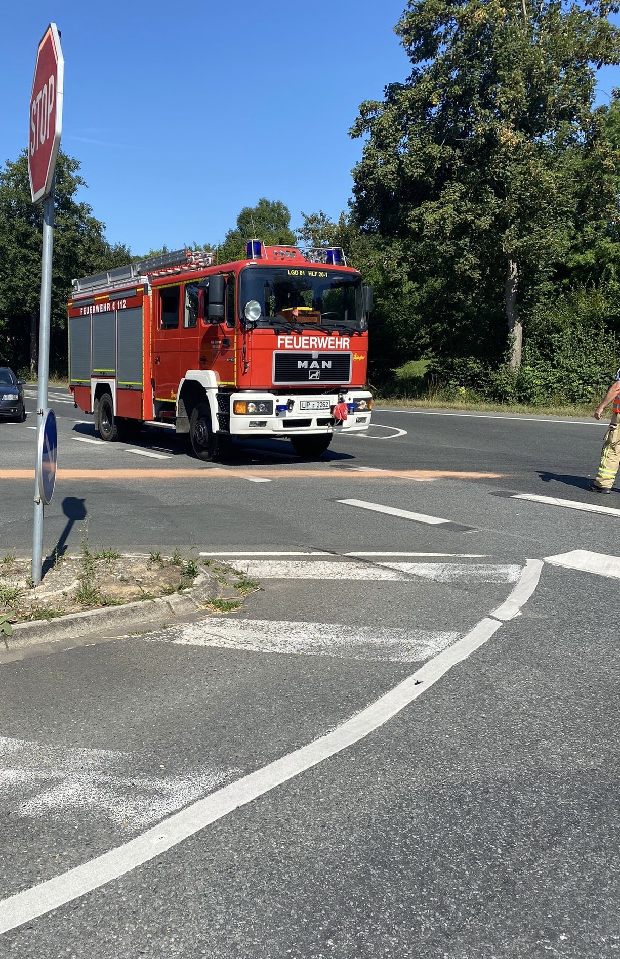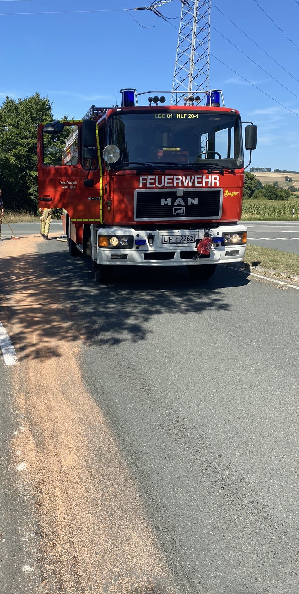 Die Einheit Lügde wurde zu einer Ölspur in den Ortsteil Harzberg alarmiert. An der Einsatzstelle stellte sich heraus, das ein Bus an mehreren Kreuzungsbereichen in Lügde Betriebsstoffe verloren hat. Die Einsatzkräfte sicherten die einzelnen Einsatzstellen gegen den fließenden Verkehr ab und machten die ausgelaufenen Betriebsstoffe mit speziellem Bindemittel unschädlich. Im Anschluss wurde das Bindemittel wieder aufgenommen und der fachgerechten Entsorgung zugeführt. Folgende Kreuzungsbereiche wurden mit Bindemittel abgestreut: Höxterstraße/L614, Provinzialstraße/L614 und der Kreuzungsbereich Schwalenberger Str./Lügder Str. /Hauptstraße im Ortsteil Rischenau. Nach eineinhalb Stunden war der Einsatz für die Feuerwehr beendet.